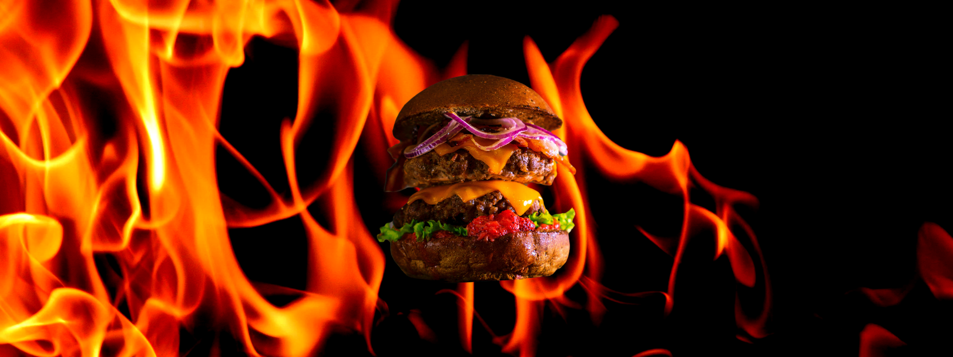 2 hamburgueres de costela, queijo, bacon crocante, picles, alface americana e maionese de osso. Batata crinkles com maionese de mostarda