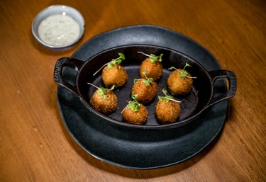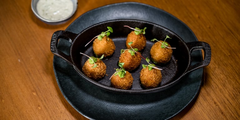 Bolinho de chambaril braseado no vinho com maionese de pimenta de cheiro
