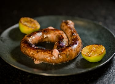 Baguete de fermentação natural, assada na brasa com creme artesanal de alho e queijo.
